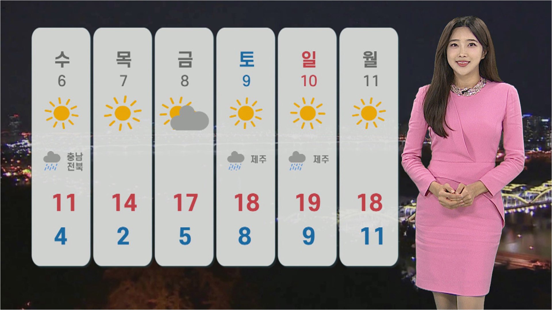 오늘 내륙 하늘은 맑거나 구름만 다소 지나가고 있습니다. 제주도에는 5에서 20mm의 비가 가끔 이어지겠습니다. 밤사이 북쪽에서 찬 공기가 내려오면서, 내일 날씨는 급변할 것입니다. 특히 찬 바람으로 인해 체감온도가 더욱 낮게 느껴질 수 있으므로, 옷차림에 유의해야 합니다.